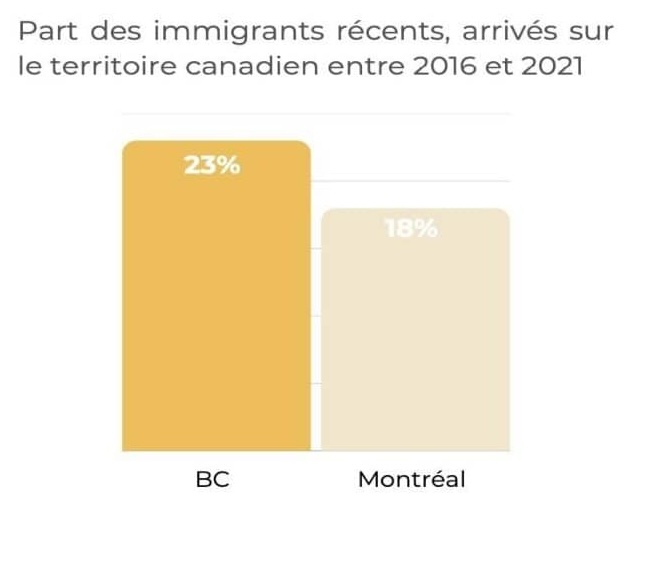 Un document édité en décembre 2023 par le Conseil local des intervenants communautaires (CLIC) de Bordeaux-Cartierville, basé sur le recensement 2021 de Statistique Canada, estime à 23 % la part dans le district des immigrants récents, arrivés entre 2016 et 2021 [voir histogramme, plus haut]. Selon la même source, à Bordeaux-Cartierville, 76 % des familles sont des familles immigrantes.