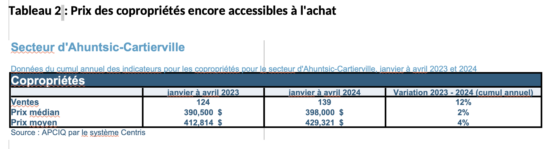 Toutefois, comme ils se situent toujours à des niveaux inférieurs, en moyenne, à ceux pratiqués au centre-ville, les loyers ne constituent pas un barrage pour les personnes désireuses de vivre dans l’arrondissement. En outre, les prix encore accessibles des biens immobiliers mis en vente (tableau 2) et les services de proximité adaptés aux besoins des familles amplifient aussi l’attractivité du secteur.