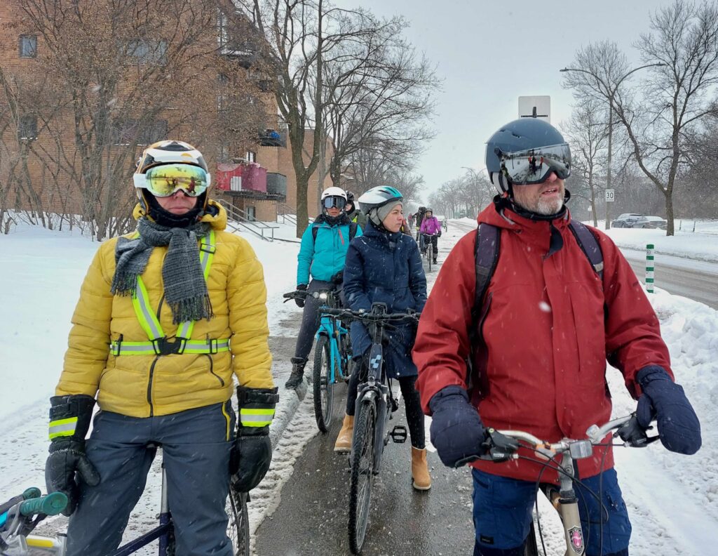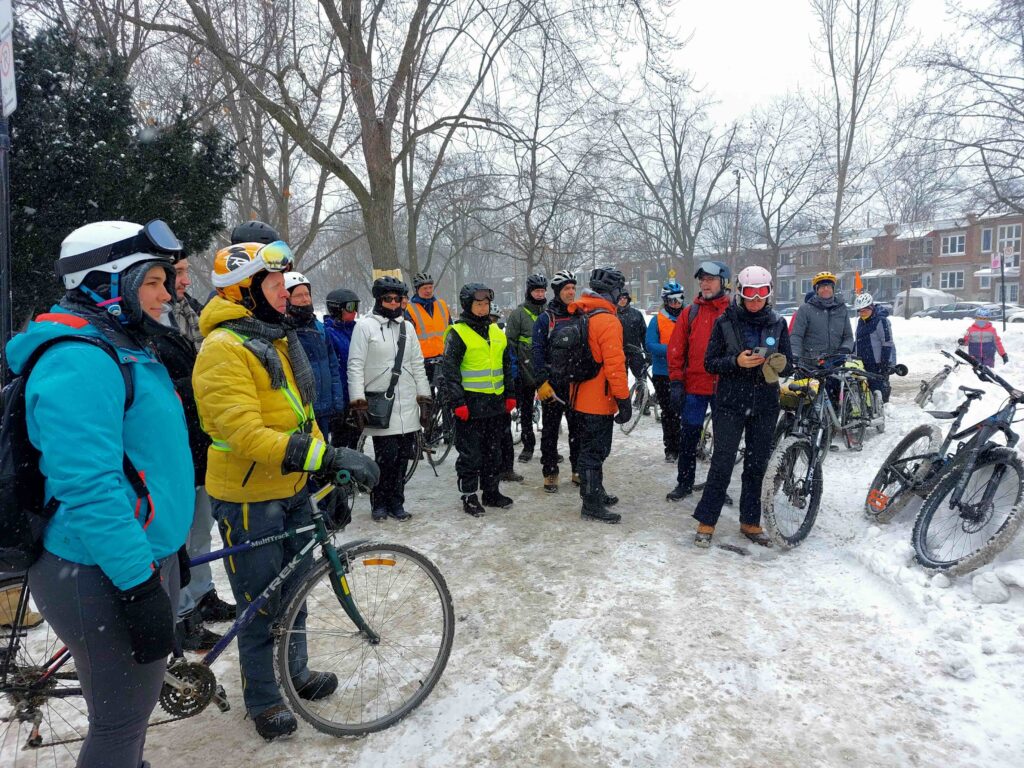 Les participants de la nouvelle cohorte de la subvention, mais aussi celles et ceux de l’an passé, de même que les amateurs de vélo d’hiver en général étaient conviés au chalet du parc Henri-Julien ce samedi à 13 h. Le trajet choisi avait pour but de faire vivre l’expérience de rouler en hiver dans Ahuntsic-Cartierville.