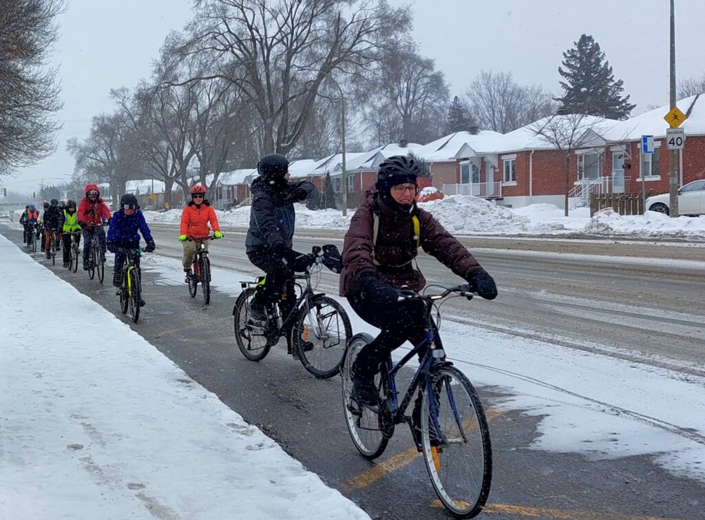 Une cinquantaine de personnes, adultes et enfants, n’ont pas eu froid aux yeux samedi dernier (20 janvier) en enfourchant leurs vélos dans les rues d’Ahuntsic-Cartierville.
