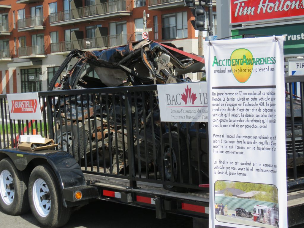 Sur place, il y avait aussi une voiture complètement démolie en démonstration pour illustrer le triste cas d’un adolescent de 17 ans qui avait perdu la vie en faisant une fausse manœuvre.
