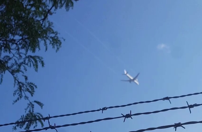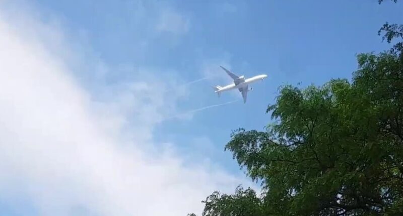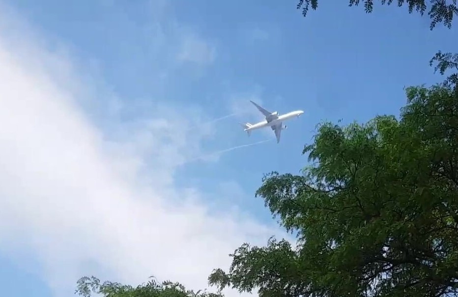Avion avec trainées blanches passant au dessus d’Ahuntsic-Cartierville. (Photo: courtoisie)