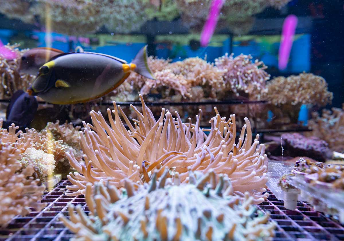 En déambulant dans les allées du magasin, on découvre les différents types de coraux qui existent. Dans le bassin central, il y a les coraux mous. Ceux-là ont toutes sortes de tentacules qui dansent au gré du courant. Plus faciles à entretenir, ils sont idéaux pour des débutants. Proche de l’entrée, les coraux durs demandent un environnement précis et un entretien bien plus exigeant.