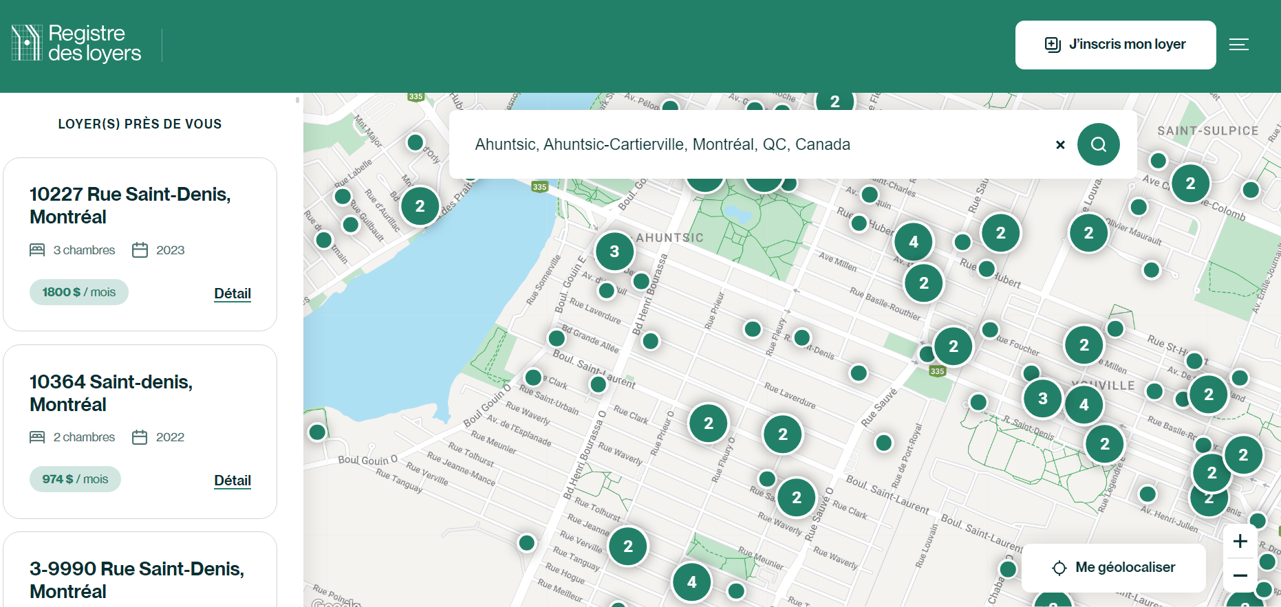 Plusieurs dizaines de logements dans Ahuntsic-Cartierville sont répertoriés sur le site Registre des loyers, qui comprend une carte interactive.