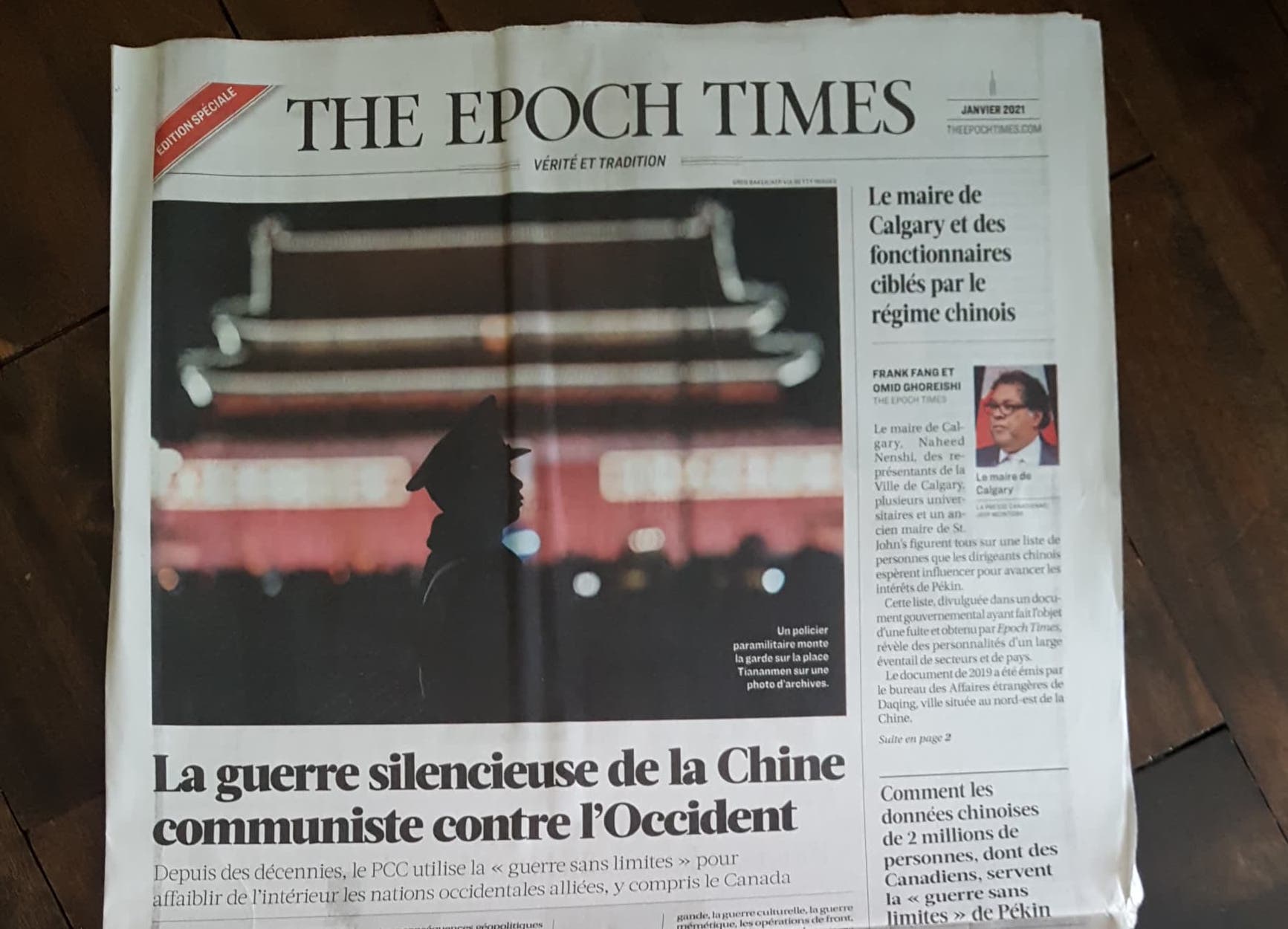 Photo de la dernière édition du Epoch Times, envoyée par une résidante de l’arrondissement.
