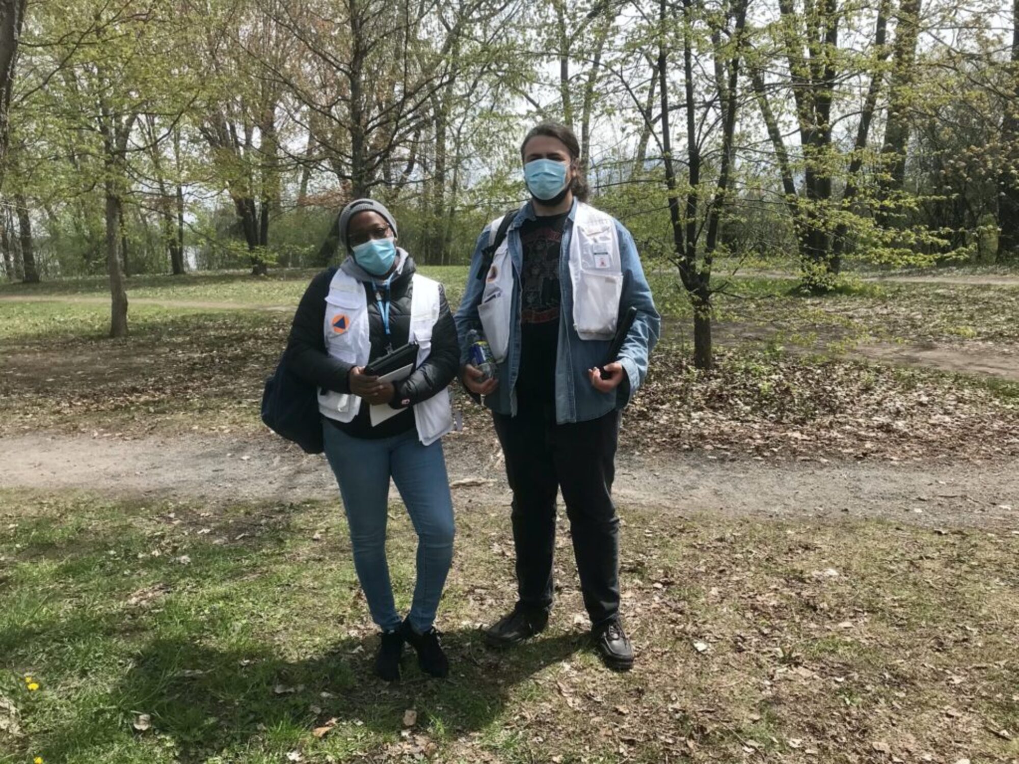 Kevin Aubin-Lalonde et Louna Cajoux, agents de terrain de l’équipe de sensibilisation COVID, rencontrés au parc de l’Île Perry. (photo : Simon Van Vliet)
