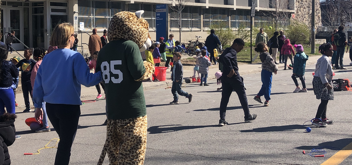 Bien entendu, cet espace propice aux jeux et aux rencontres n’a rien de spontané. D’une part, l’information relative à sa mise en place a largement été diffusée auprès des parents par le corps enseignant, entre autres. Des dépliants ont également été distribués aux riverains et aux automobilistes du secteur, en amont de l’opération. D’autre part, cette expérience découle d’un plan de recherche-intervention, développé conjointement par Katherine Frohlich, professeure titulaire au Département de médecine sociale et préventive de l’École de santé publique de l’Université de Montréal et par le Centre d’écologie urbaine. En outre, cette initiative a été rendue possible par l’implication des bénévoles sur le terrain qui sécurisent la zone.