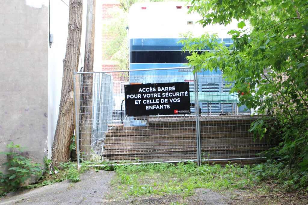 De nombreuses ruelles, dont celle-ci, n’appartiennent plus à la Ville de Montréal. Dans le cas qui nous occupe, Prestigium en a fait l’acquisition pour une somme de 3 000 $ en 2019. La voie appartenait auparavant à la Société immobilière Dagobert.