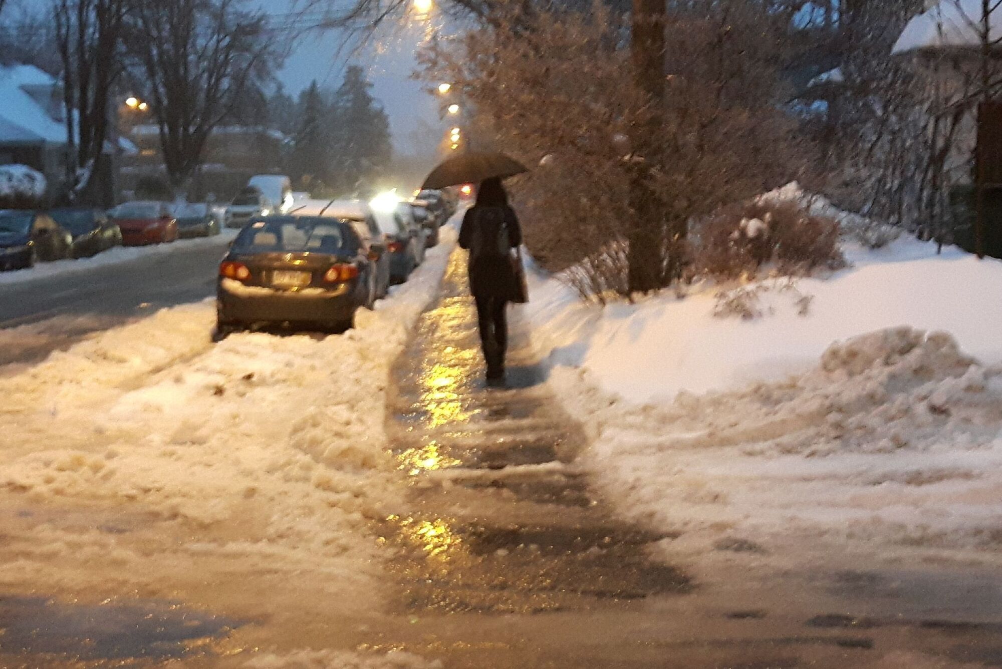 Compte tenu des précipitations liquides qui gèleront, il y aura des risques de blessures pour les piétons, notamment sur les trottoirs glacés [ndlr: il y a d’ailleurs eu une nette augmentation d’accidents de cette nature au cours des derniers mois à Montréal].
