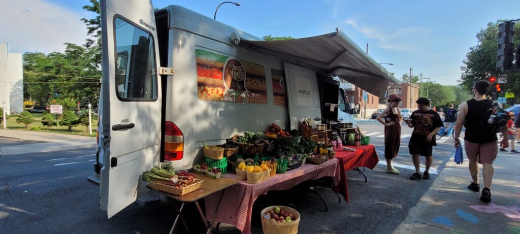 Le camion du Marché Ahuntsic-Cartierville s’y déplacera aussi plusieurs fois pendant l’été, ainsi que des camions de nourriture de rue et des kiosques d’information, utiles à la population du quartier.