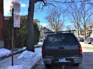 La résidante qui a contacté le jdv, Mme Picard, demeure sur la rue Foucher, à l’intersection de l’avenue Émile-Journault, près du Cégep Ahuntsic et de la station de métro Crémazie. Plusieurs étudiants du Cégep et des personnes venant de Laval, prenant le métro à Crémazie pour aller travailler, garent leur véhicule près de chez elle.