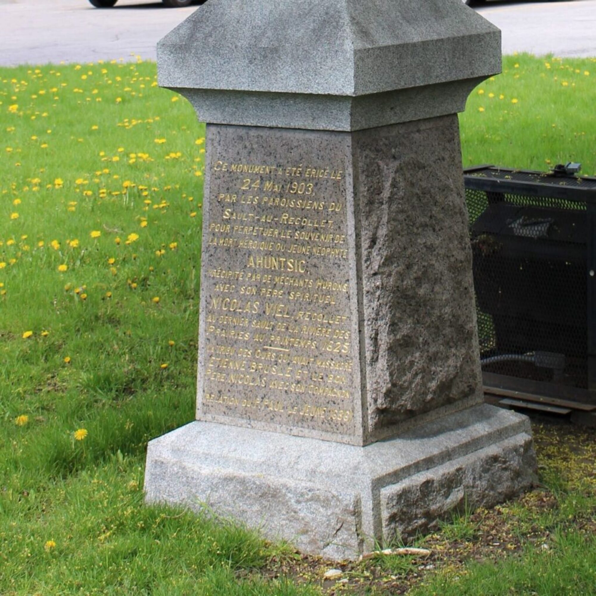 « Les statues commémoratives de Nicolas Viel et d’Ahuntsic sont situées dans l’aire de protection de l’Église du Sault-au-Récollet, mais le recouvrement des inscriptions des statues n’est pas assujetti à la Loi sur le patrimoine culturel. Le Ministère n’a donc pas été impliqué à cet effet », a répondu l’équipe des relations médias du ministère de la Culture et des Communications.