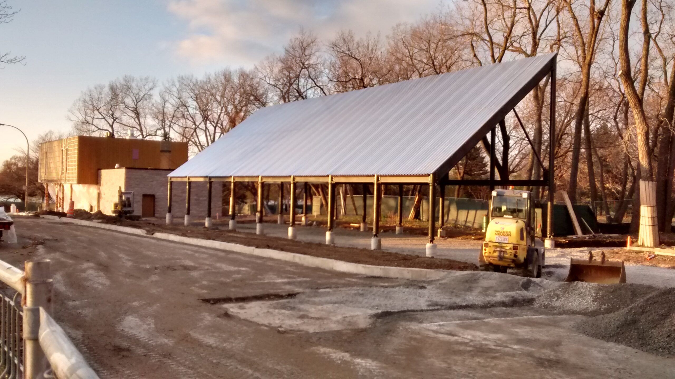 On peut apercevoir la structure à droite qui soutiendra les futurs panneaux photovoltaïques du pavillon d’accueil du Parcours Gouin (Photo: Philippe Rachiele)