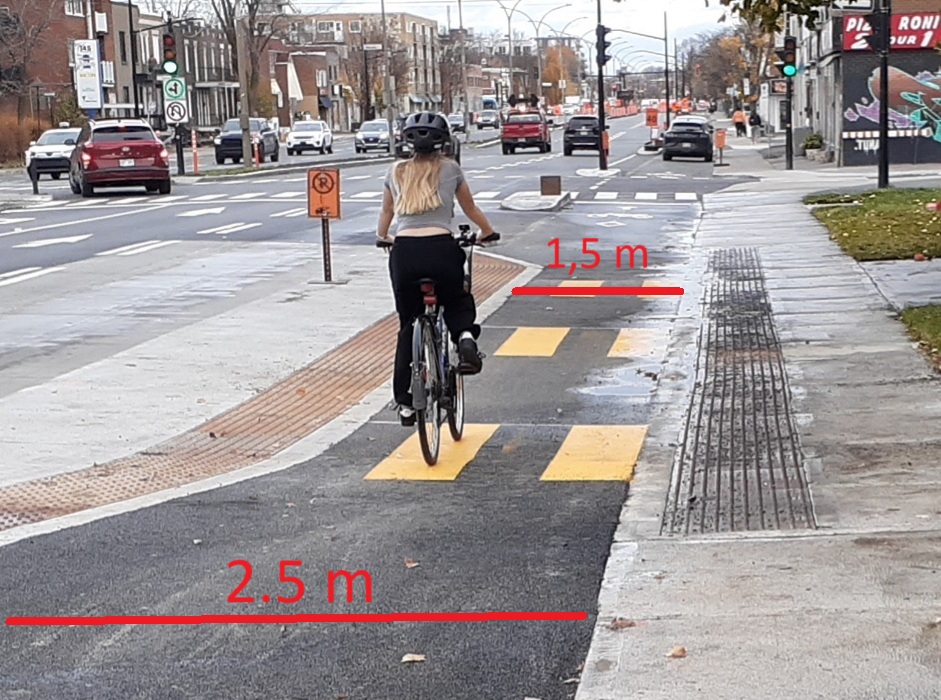 À titre informatif, il faut savoir que la largeur des voies pour les véhicules est semblable aux recommandations de l’organisme National Association of City Transportation Official (NACTO), une association d’une centaine de grandes villes nord-américaines qui promeut les bonnes pratiques urbanistiques.