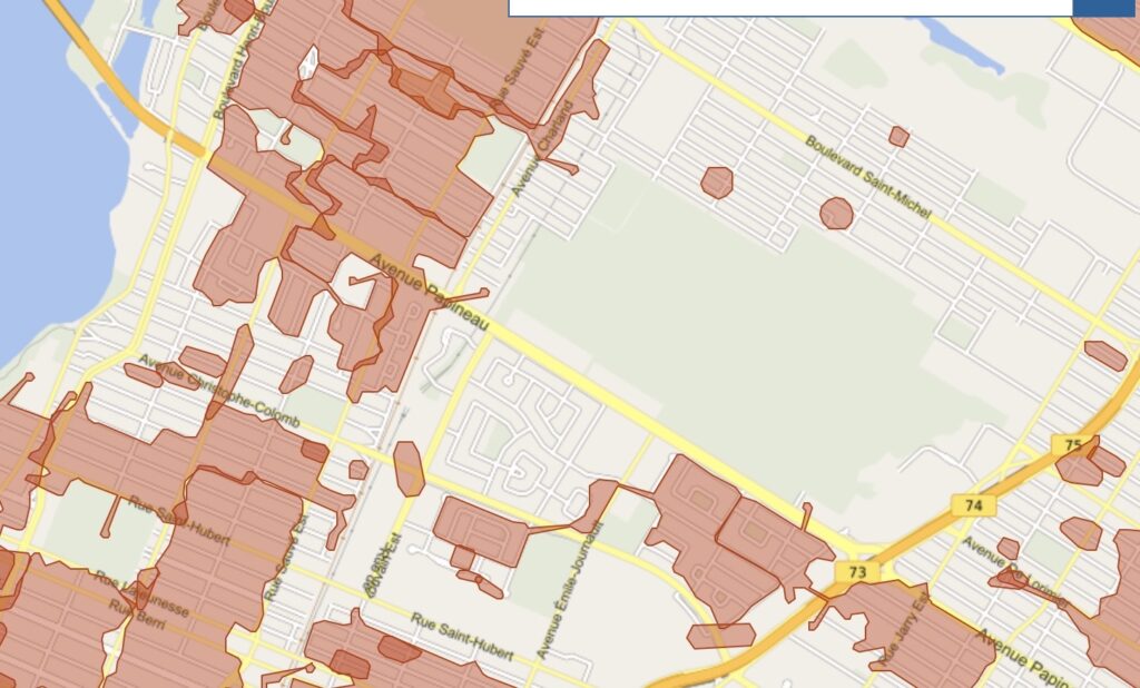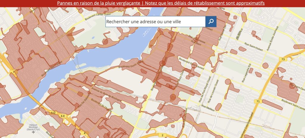 La relationniste d’Hydro-Québec ne pouvait pas fournir au Journal des voisins des données précises concernant le nombre d’abonnés et leur localisation dans Ahuntsic-Cartierville, mais la page Info-pannes illustrait bien que l’arrondissement était grandement plongé dans le noir, ou plutôt dans le rouge, si l’on se réfère aux zones colorées des cartes consultées. Il s’agissait surtout des adresses au nord de la rue Sauvé, d’ouest en l’est. Des secteurs au sud de l’arrondissement, le long du Métropolitain, étaient aussi touchés.