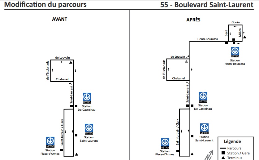 Comme archive.jdv.symbiodev.xyz le rapportait en primeur dans son édition du 11 mai dernier, l’autobus 55 en provenance du Vieux-Montréal que plusieurs personnes prenaient la nuit quand le métro n’était plus disponible et qui terminait sa course dans le quartier Chabanel, changera pour le mieux dès le 28 août prochain.