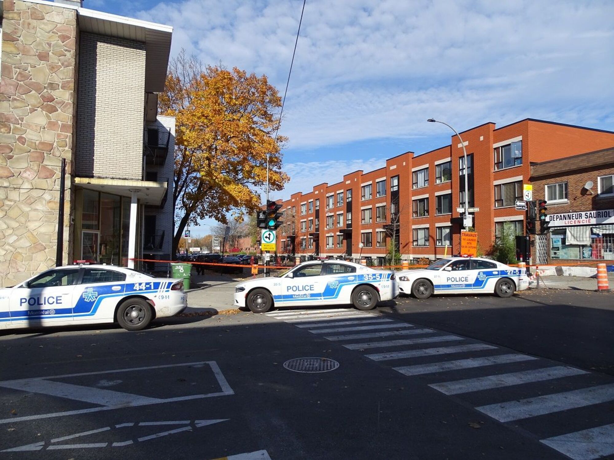 À 10 h 35, ce dimanche matin, la rue Lajeunesse était toujours fermée aux piétons, cyclistes et automobilistes entre les rues Sauriol et Fleury, les agents en scène de crime étaient toujours sur place pour faire la lumière sur l’événement.