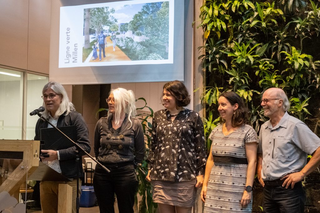Le projet de la Ligne verte Millen, ayant pour but de reconfigurer cette rue résidentielle anormalement large, notamment en raison du tramway qui y passait autrefois, est donc sorti grand gagnant. Le jury formé de cinq experts provenant de milieux diversifiés lui a décerné le prix de meilleur projet citoyen, en plus d’une somme de 1 000 $.