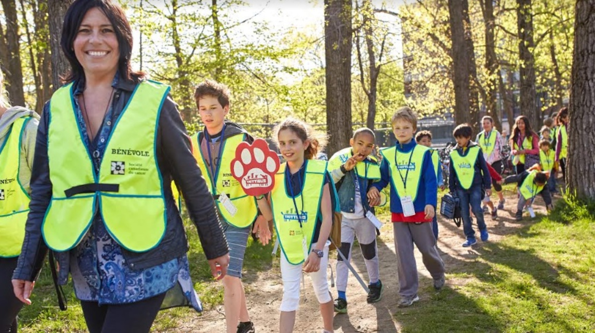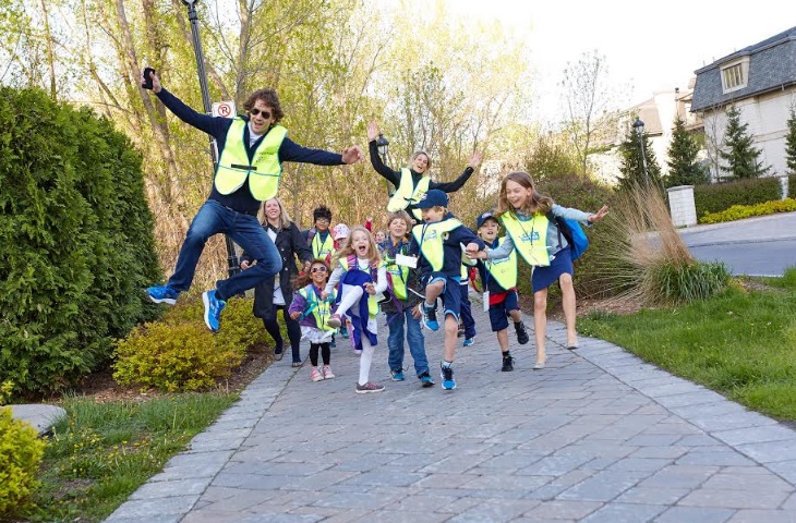 Un trottibus avec des bénévoles qui conduisent les enfants à bonne école! (Crédit-photo: Société canadienne du cancer