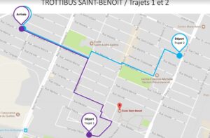 Trajets proposés pour le Trottibus St-Benoît (Source: Estelle Huard) VOIR après le vidéo pour le plan plus grand.