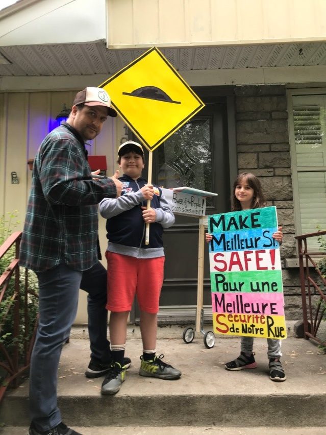 Angelo Migliara, un résidant et père de famille habitant la rue Meilleur, en a assez des voitures circulant jusqu’à plus de 60 km/h sur sa rue, où la limite de vitesse est deux fois moins élevée. M. Migliara et ses enfants ont donc profité du confinement pour recueillir des signatures sur une pétition présentée à l’arrondissement, mais en respectant les mesures sanitaires, dont la distanciation.