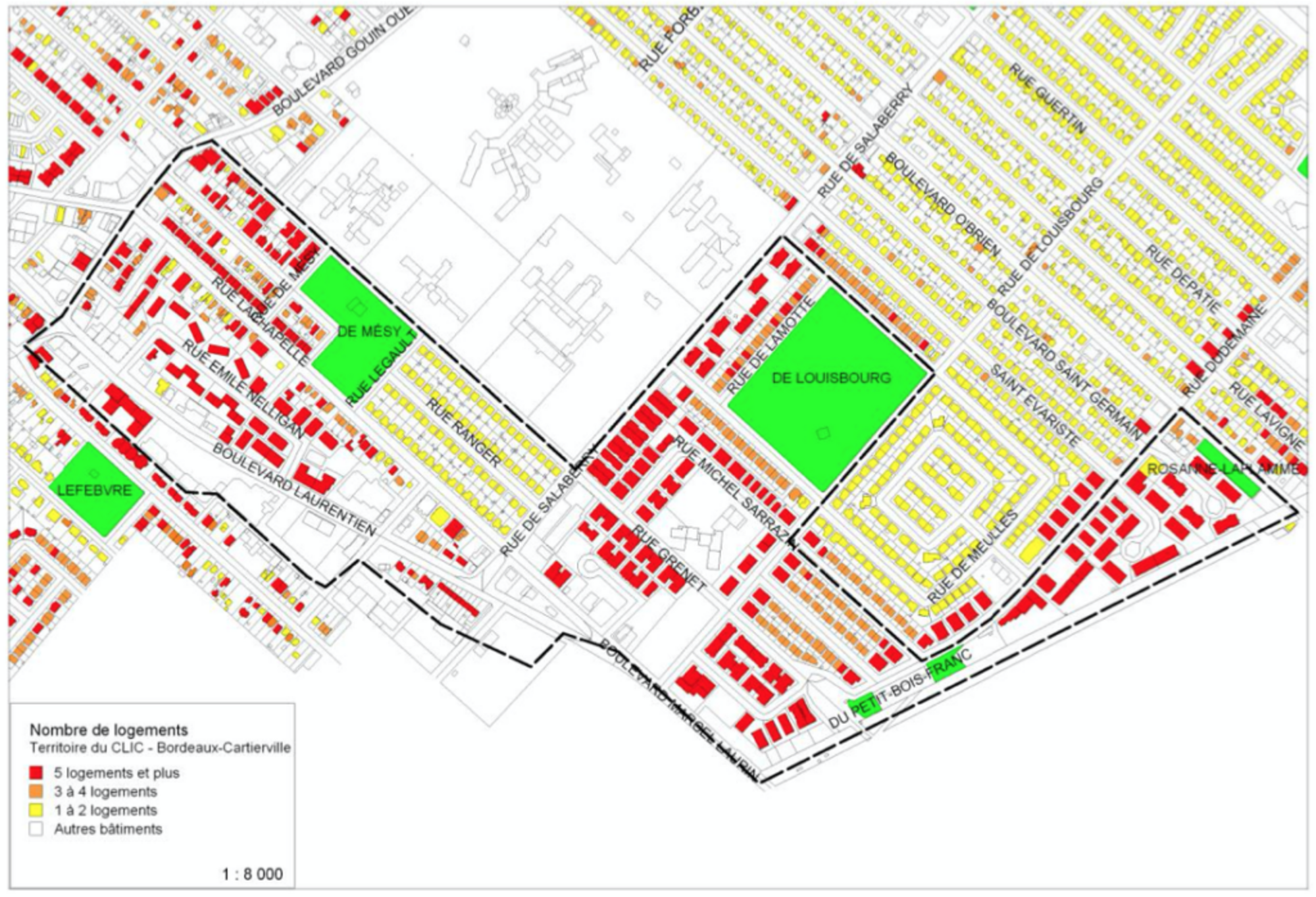 L’utilisation de cette carte avec votre article porte à confusion et peut laisser croire qu’environs le tiers des immeubles du quartier sont insalubres. Misère…