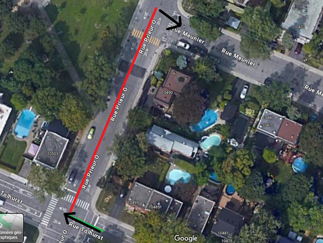 Il était 8 h 14, le 31 janvier dernier, heure d’arrivée à l’école de nombreux enfants d’âge scolaire. Après avoir reculé sur la traverse piétonne située sur la rue Prieur Ouest, devant le parc, le camion de recyclage a ensuite bifurqué pour se diriger vers la rue Meunier.