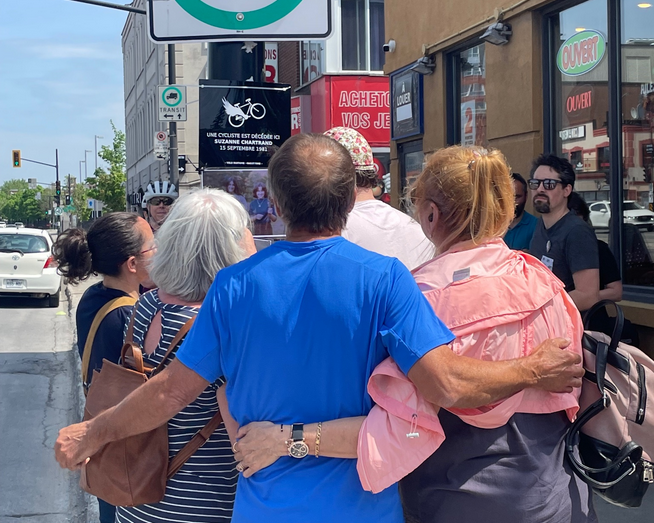 S. L. : C’est la famille ainsi que Christiane Valiquette, la meilleure amie de Suzanne Chartrand qui la connaissait depuis la maternelle, qui ont communiqué avec nous au collectif Vélo fantôme. Chaque fois qu’ils entendaient qu’un nouveau vélo fantôme était installé à la suite d’une demande des familles pour commémorer le décès d’un cycliste, cela leur rappelait le décès tragique de Suzanne Chartrand. Ils ont donc demandé l’installation d’un vélo fantôme pour elle.