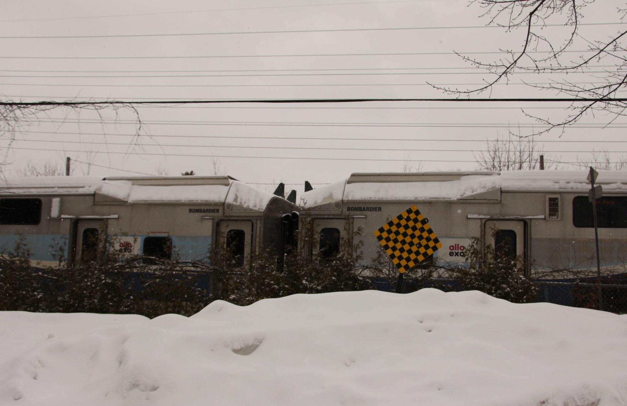 Alors qu’il neigeait abondamment sur Ahuntsic-Cartierville, ce matin du 18 février, un train de passagers d’EXO reliant Saint-Jérôme à Lucien-L’allier est entré en collision avec une voiture qui s’était engagée au passage à niveau situé non loin du restaurant Le Bordelais, sur le boulevard Gouin Ouest, dans Nouveau-Bordeaux.