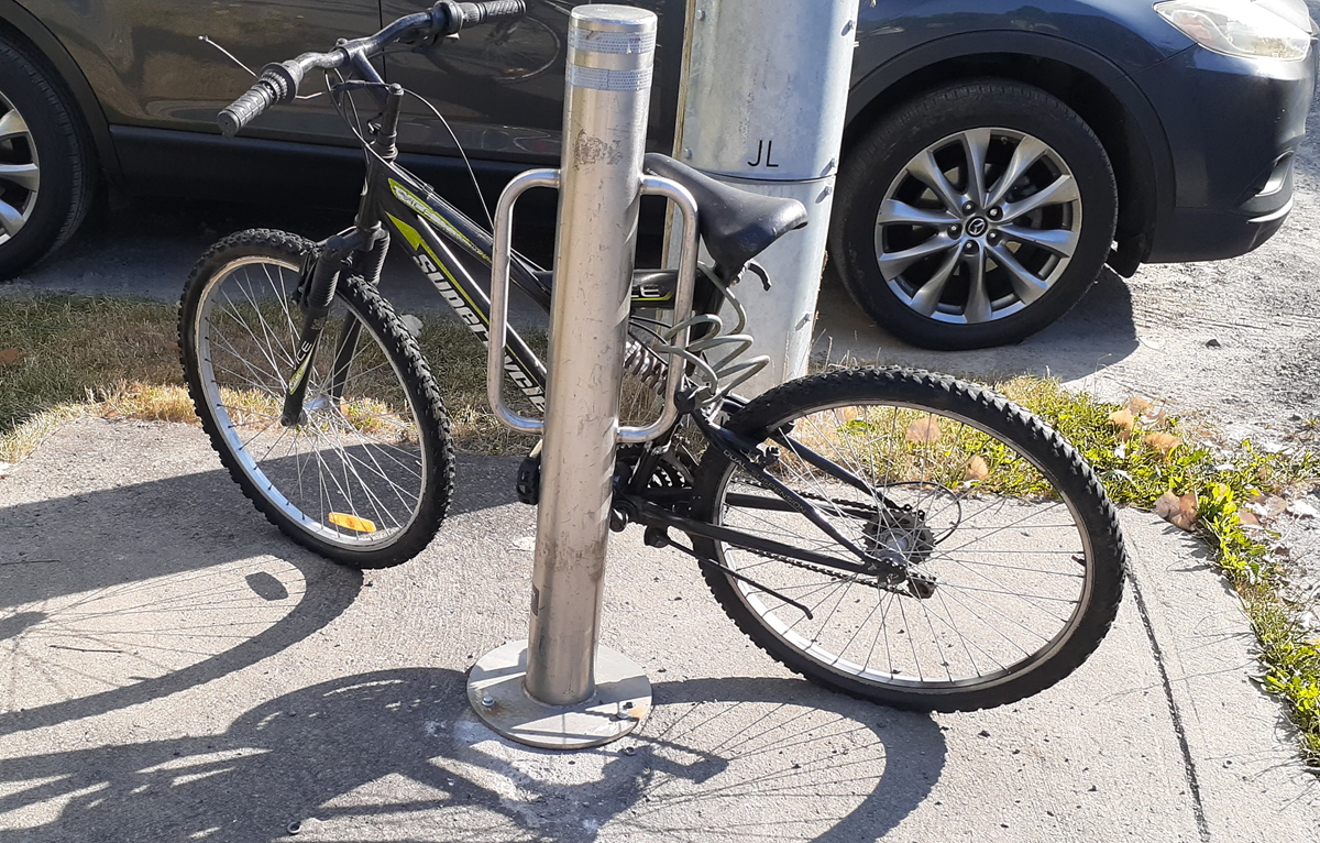 Support à vélo qui a fait son apparition devant une résidence de la rue Clark (Photo : Philippe Rachiele, JDV)