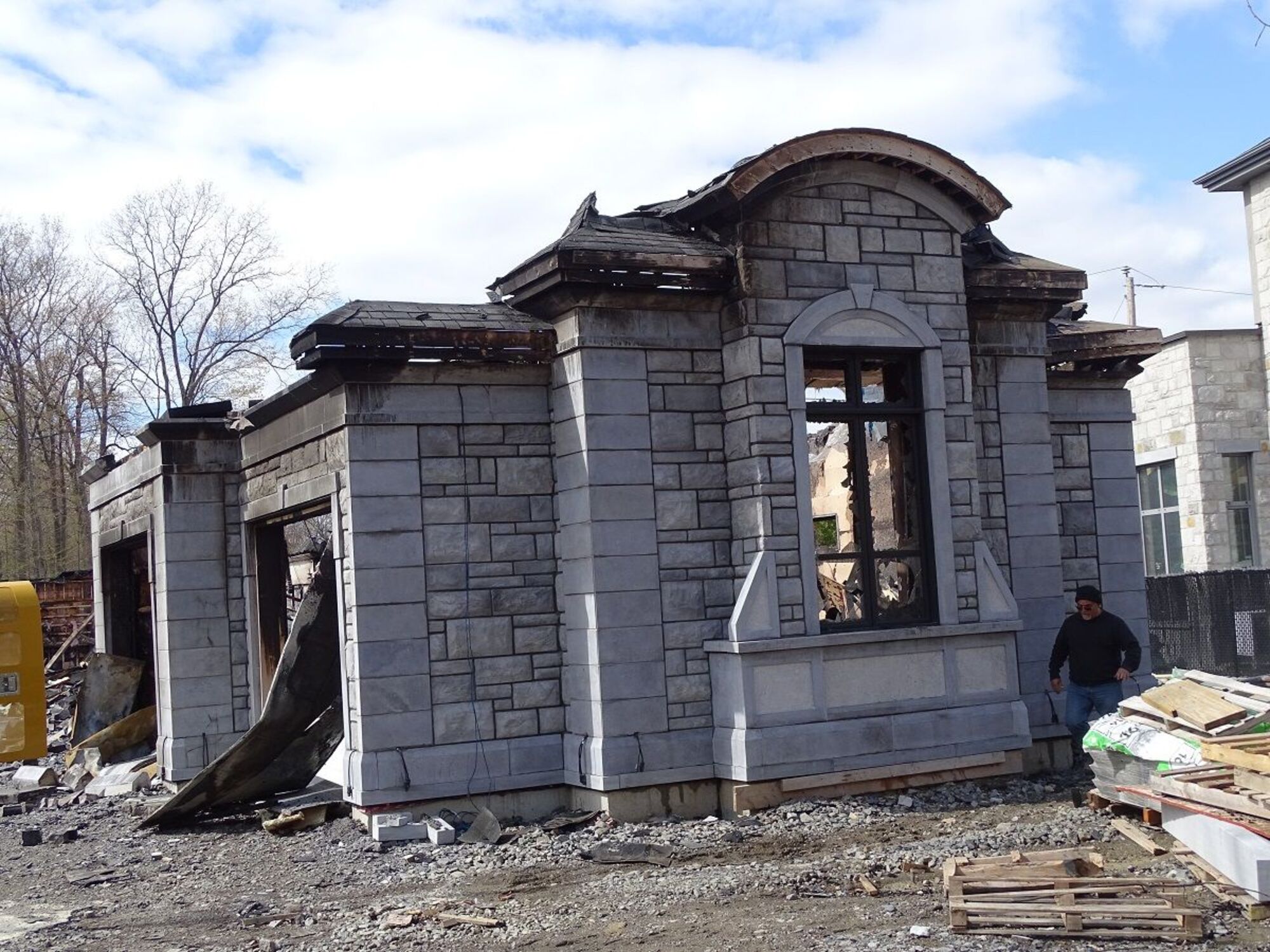 Une partie du Manoir de Feras Antoon de MindGeek qui a été détruit par le feu le 26 avril 2021. (Photo: Philippe Rachiele, JDV)