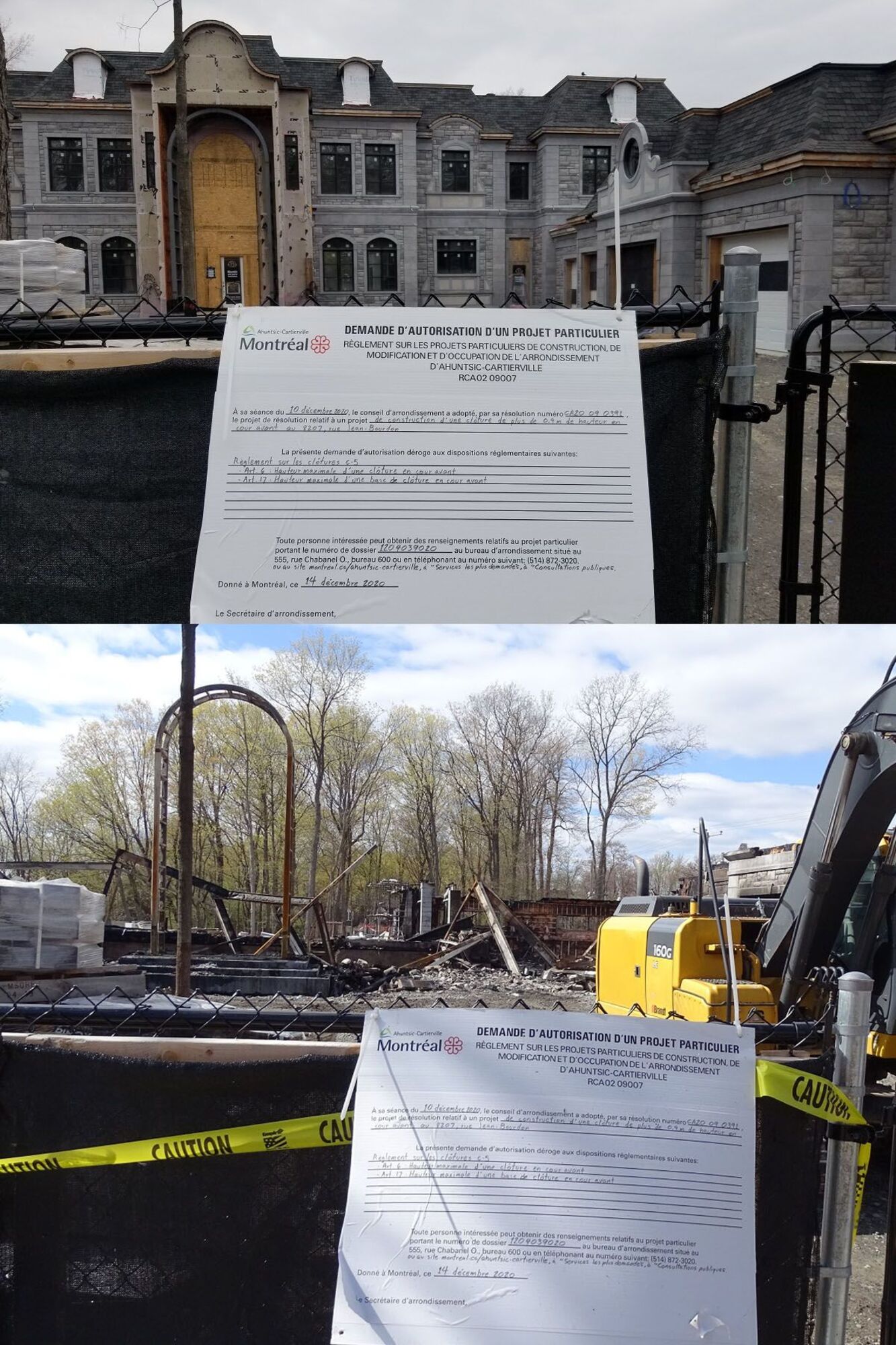 Photo avant/après du Manoir de Feras Antoon de MindGeek qui a été détruit le 26 avril 2021.(Photos: Philippe Rachiele, JDV)