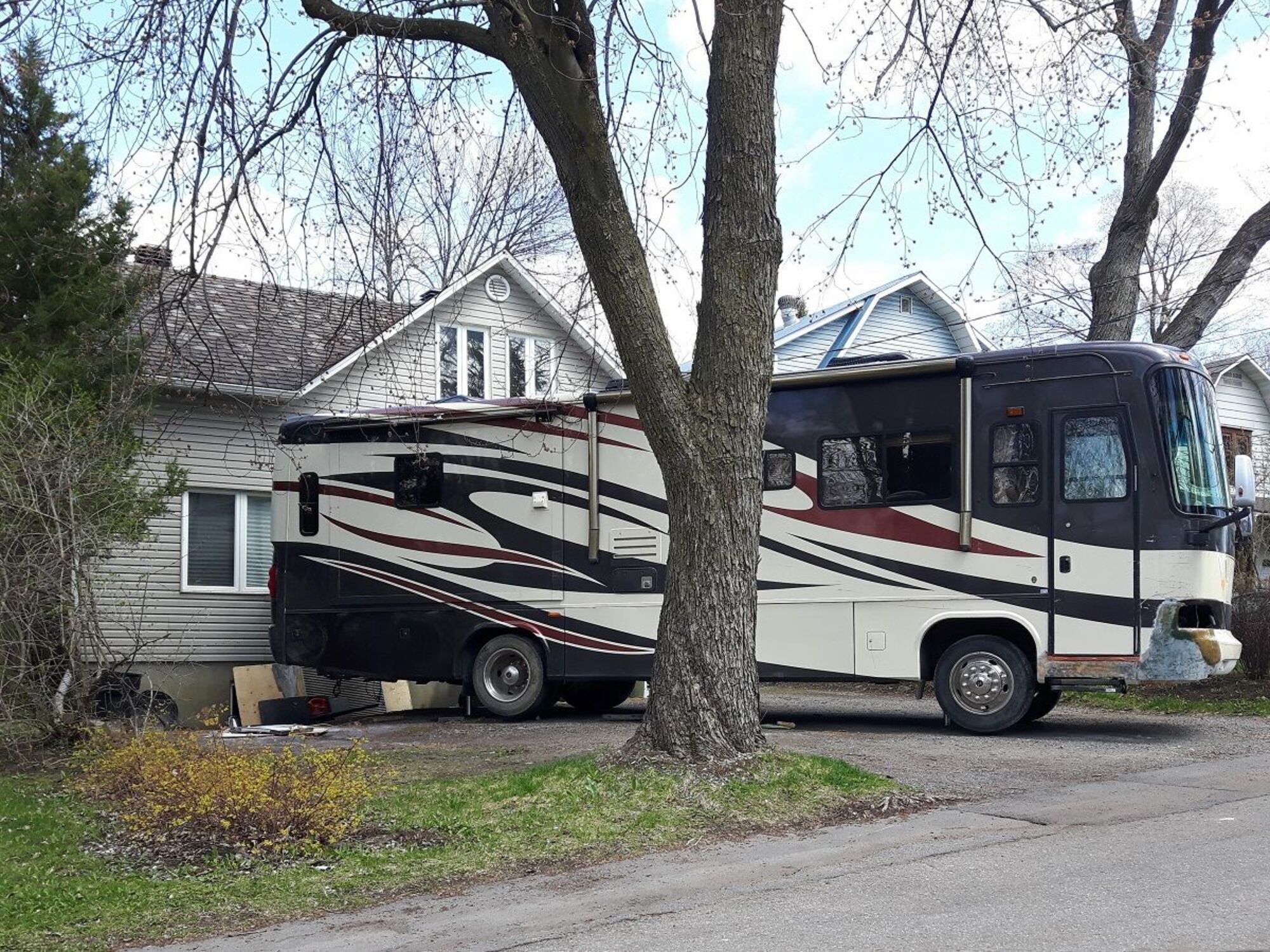 La situation perdure depuis au moins quatre ans. Des véhicules y sont abandonnés depuis des années. Il n’y a plus de gazon sur le terrain. La hauteur du toit d’un véhicule récréatif arrive au deuxième étage de la maison des voisins dont la vue est gâchée. Un arbre est en train de se détériorer puisque les véhicules sont stationnés sur ses racines. Ledit voisin fait des gros feux pour brûler ses déchets. Des barils d’huile risquent de polluer tout le sol s’ils étaient percés.