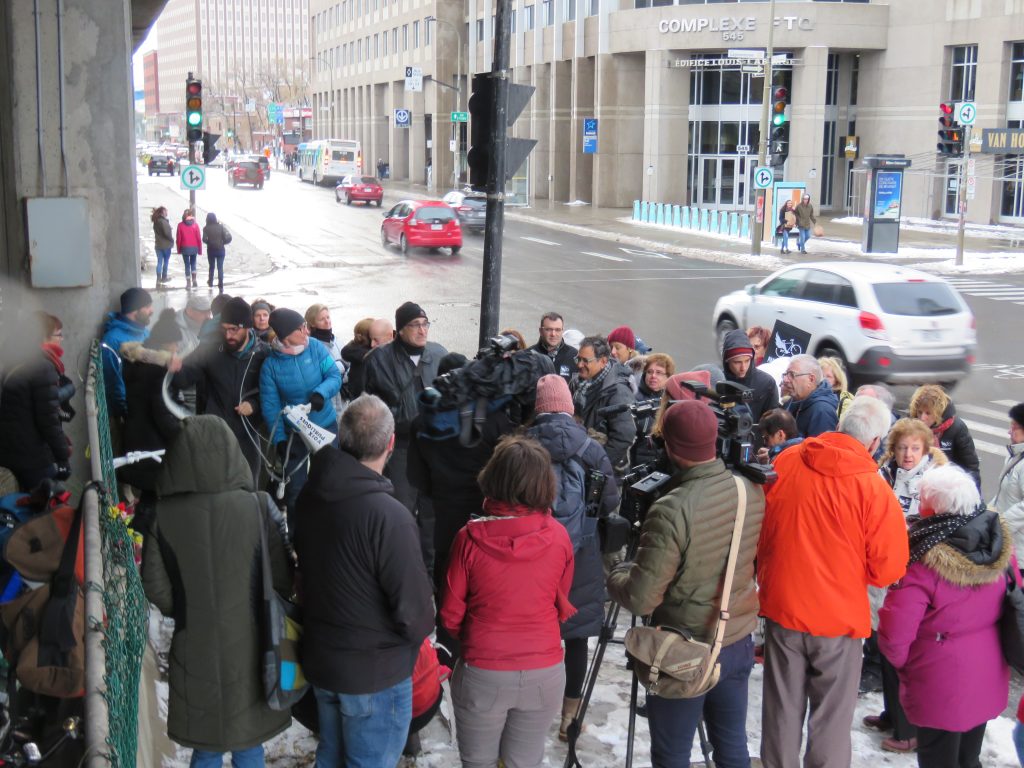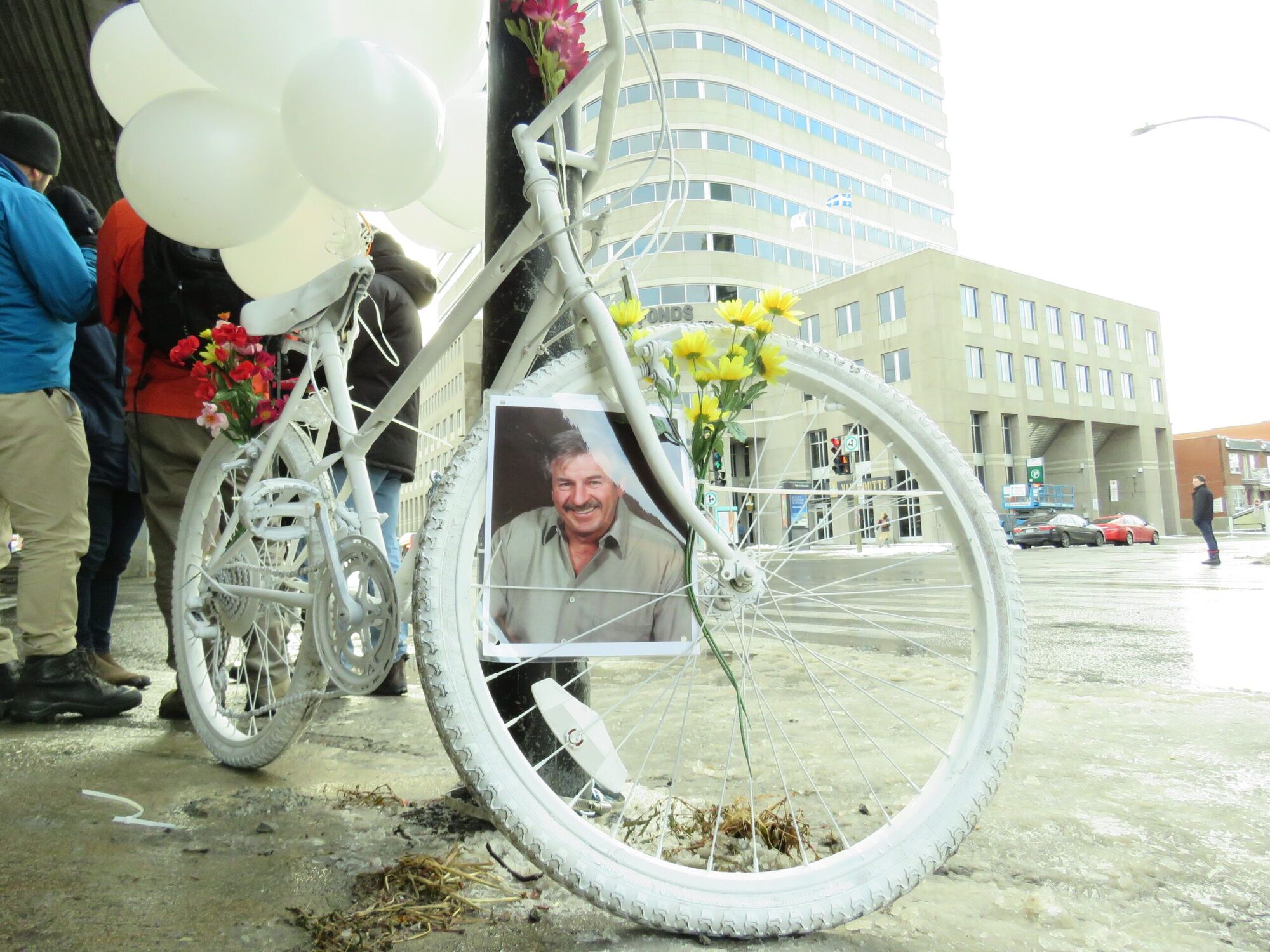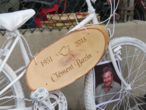Plusieurs personnes s’étaient réunies le 14 novembre, en après-midi, pour suspendre un vélo blanc, en guise de deuil de M. Bazin, angle Lajeunesse et Crémazie. Son épouse, Manon, les deux filles de Clément Bazin, dont sa fille Pascale, qui a pris la parole, plusieurs de ses neufs frères et sœurs, des amis de M. Bazin, et quelques élus, étaient parmi la soixantaine de personnes présentes.