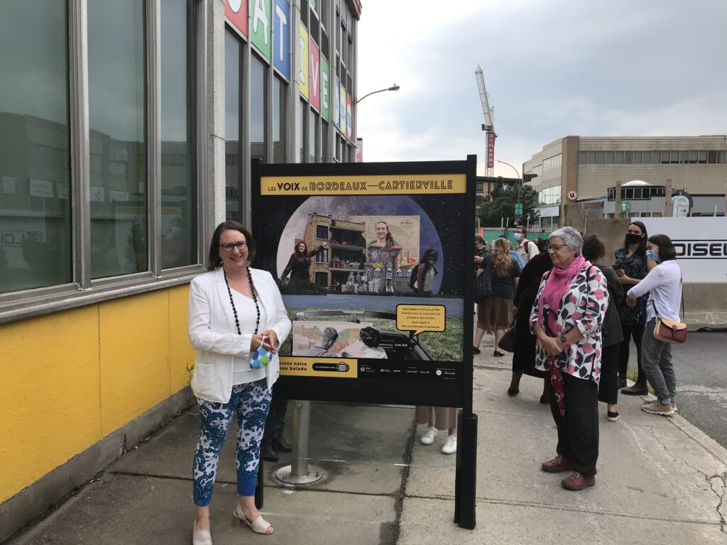 Marion Chuniaud, agente de communication au CLIC, offre une visite guidée de l’Exposition Les Voix de Bordeaux-Cartierville. (Photo : Simon Van Vliet, JDV)