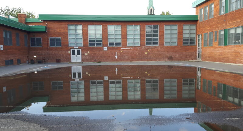Ce ne sont pas que les sous-sols de domiciles qui peuvent être inondés à cause des grosses pluies. Les cours d’école aussi! C’est ce qui est arrivé il n’y a pas si longtemps à l’école primaire Saint-André-Apôtre qui a vu une importante quantité d’eau s’accumuler sur son terrain. Une grande partie de l’aire de jeux des enfants est devenue inutilisable. Le problème se répétera-t-il tout au long de l’année après chaque pluie abondante?