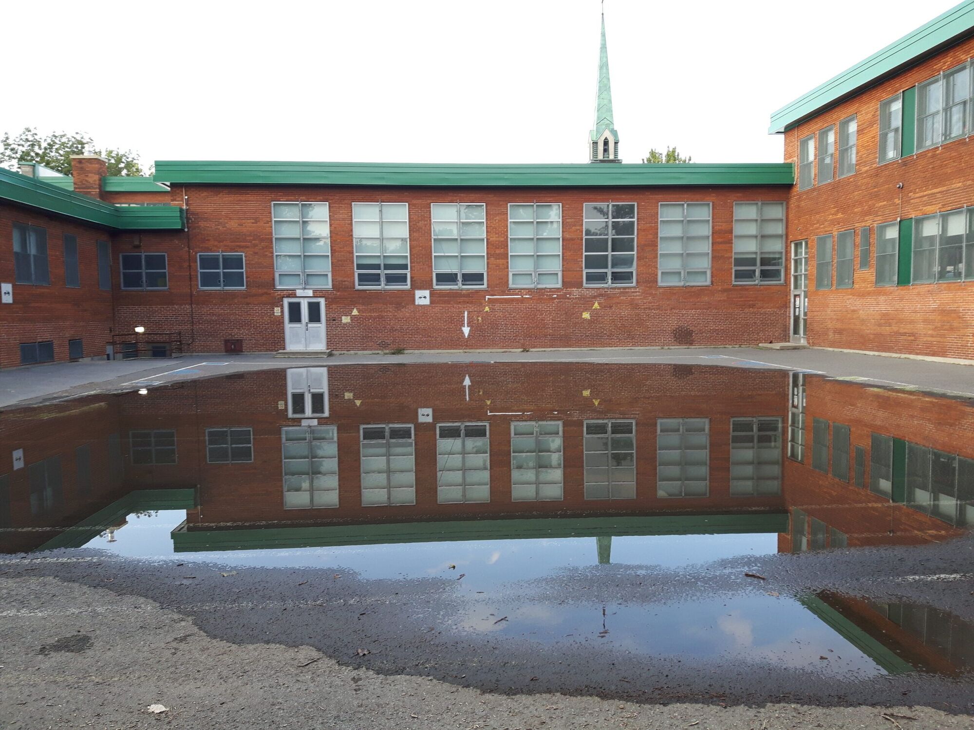Alain Perron, responsable des relations de presse au Centre de services scolaire de Montréal (CSSDM), indique que les employés des ressources matérielles du CSSDM ont vidé l’eau par l’égout et vérifié par caméra pour connaître l’état de la canalisation. Il semble que la situation résulte d’un problème d’évacuation par celle-ci.