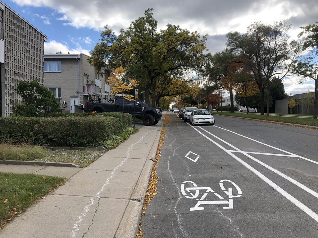 Pour les cyclistes d’Ahuntsic-Cartierville, une piste cyclable sur Louvain Est n’a rien de nouveau. Cependant, les bandes cyclables étaient situées entre les autos stationnées et la rue, ce qui présente un plus grand danger pour les usagers.