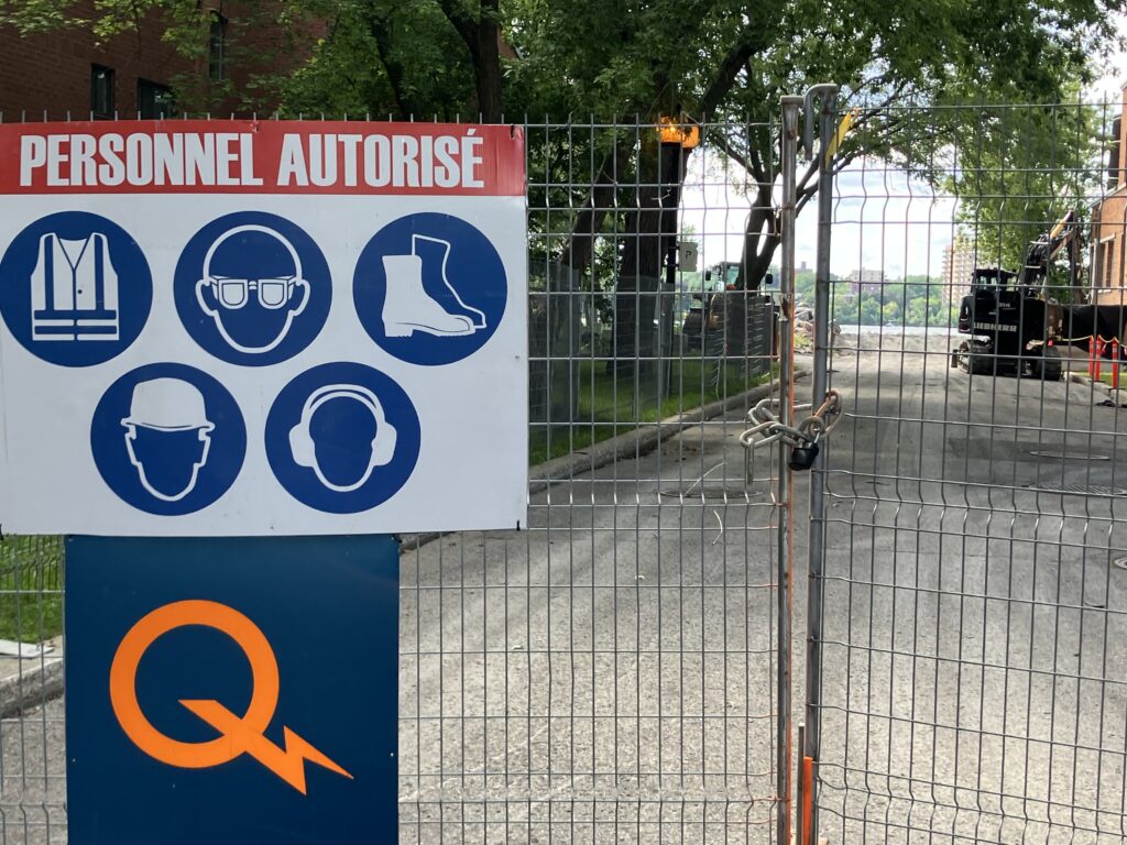 Une pelle mécanique, deux camions, plusieurs véhicules, une cabine de chantier et des toilettes sèches sont visibles au bout de la rue du Fort-Lorette, a observé le Journal des voisins (JDV). Des ouvriers ont rapidement démantelé la clôture «Frost» qui barrait l’accès à l’enrochement sur la rive dans la matinée du premier août.