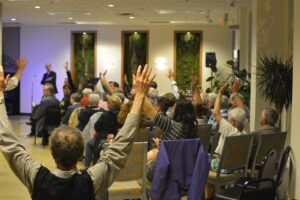 Bien que cette implantation ne les impacte pas directement, les résidants présents lors de la soirée d’information se sont montré plus qu’enthousiaste à l’idée. Au moment du vote symbolique, rares étaient les mains non levées en appui à la rue partagée.