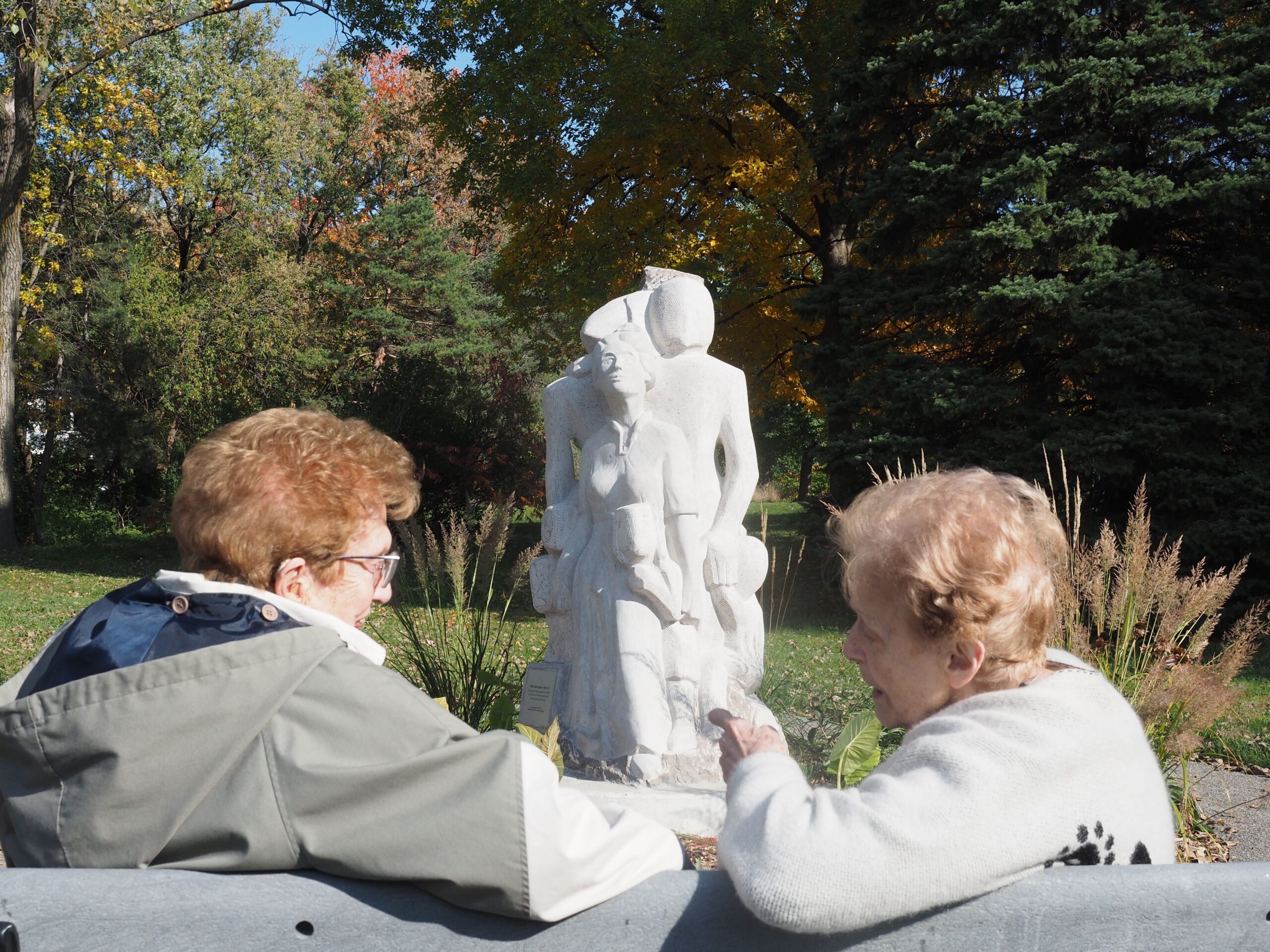 Les sœurs du Bon-Conseil ont commandité cette statue au sculpteur Claude Des Rosiers, qui a lui-même passé son enfance dans Ahuntsic. Financée par les sœurs et l’arrondissement d’Ahuntsic-Cartierville, l’œuvre vient d’être complétée par un aménagement paysager et son dernier panneau explicatif.