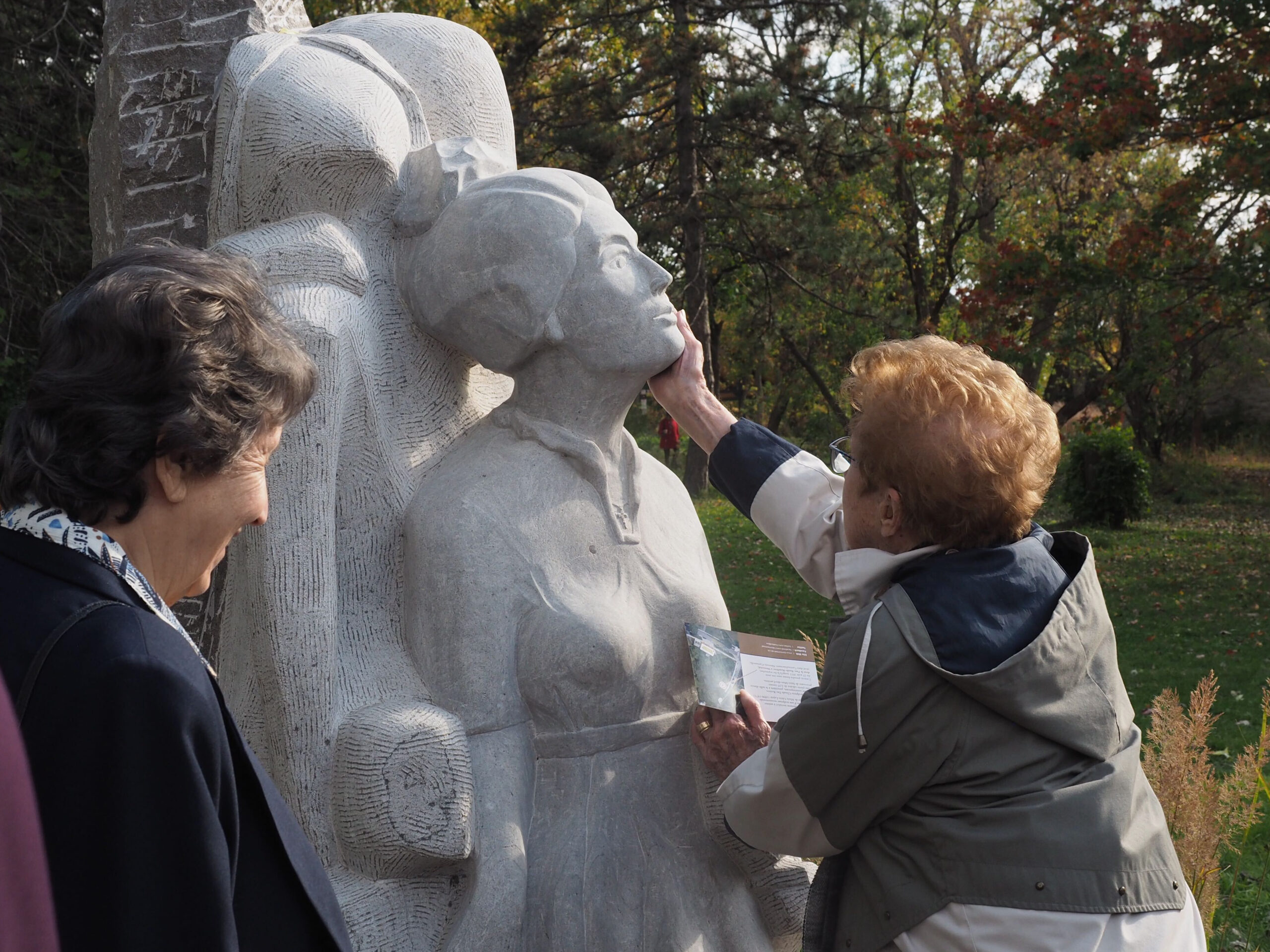 La cérémonie inauguratrice s’est terminée par un chant religieux et la distribution de morceaux de calcaire, signés de la main du sculpteur et offerts au public présent. Les membres de la famille Gérin-Lajoie ont également pu partager leurs souvenirs sur place de cette «religieuse impressionnante, mais avec qui [ils] se sentaient à l’aise».