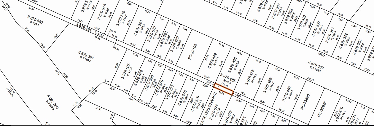 Comme on peut le voir sur des extraits du Registre foncier du Québec, le premier terrain se trouve dans le district d’Ahuntsic, situé place Deschamps, il relie cette dernière à la rue Deschamps. Le deuxième lot se situe dans le district de Bordeaux-Cartierville. Il s’agit d’un bout de rue faisant partie de la jonction entre la rue Frigon et la rue de Louisbourg.