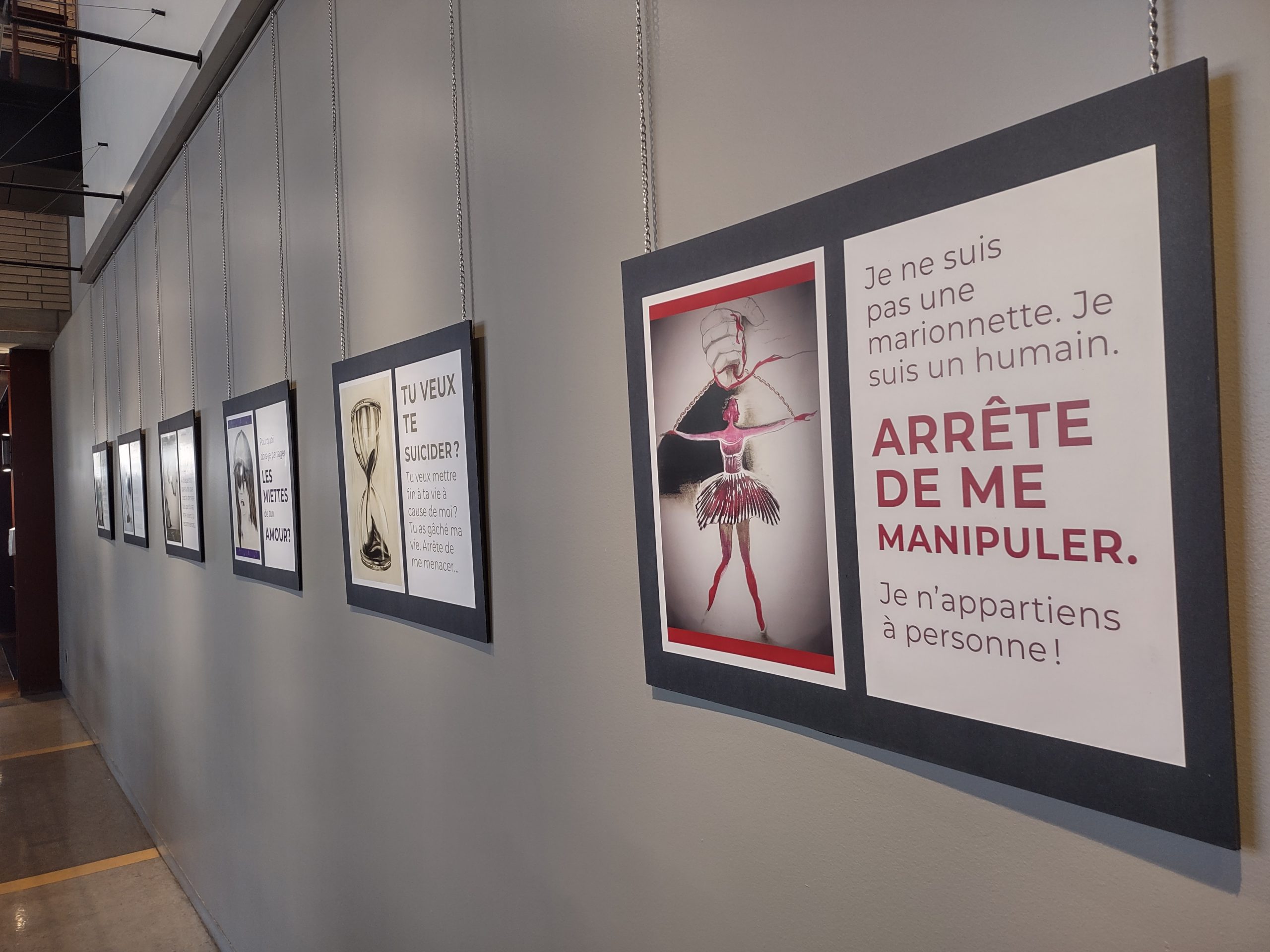 L’exposition, dupliquée trente fois, a été mise sur pied par la Table de concertation en violence conjugale du secteur nord de Montréal, est déjà visible dans une vingtaine d’établissements scolaires d’Ahuntsic-Cartierville, de Montréal-Nord, de Saint-Laurent ou de Villeray.