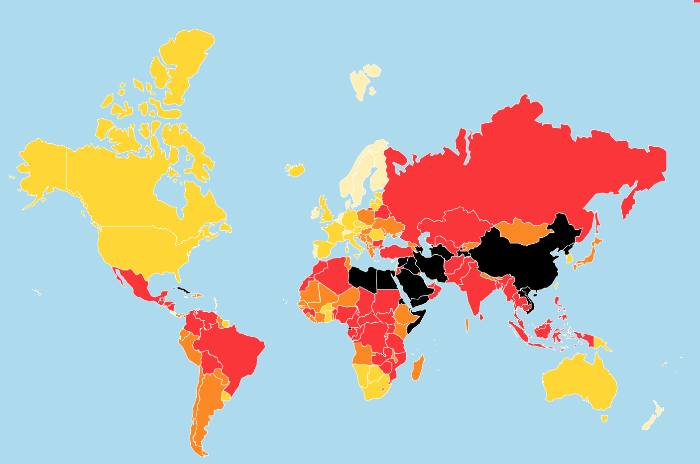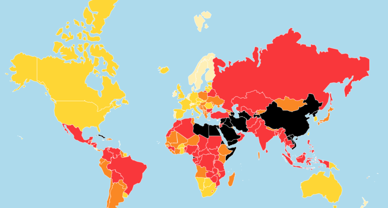 Prenez la carte de Reporters sans frontières, qui accompagne cet article : où fait-il bon vivre? Dans les pays en jaune pâle et foncé. Les pires endroits sont en noir.